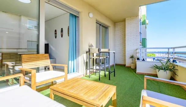 Featuring air-conditioned accommodation with a patio, Apartamento con terraza y vistas al mar is located in Burriana.