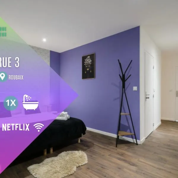 Suite Jaune #4#- Douceur & confort-self check-in is situated in Roubaix, 700 metres from La Piscine Museum, less than 1 km from Jean Lebas Train Station, as well as 3.6 km from Stade Vélodrome.