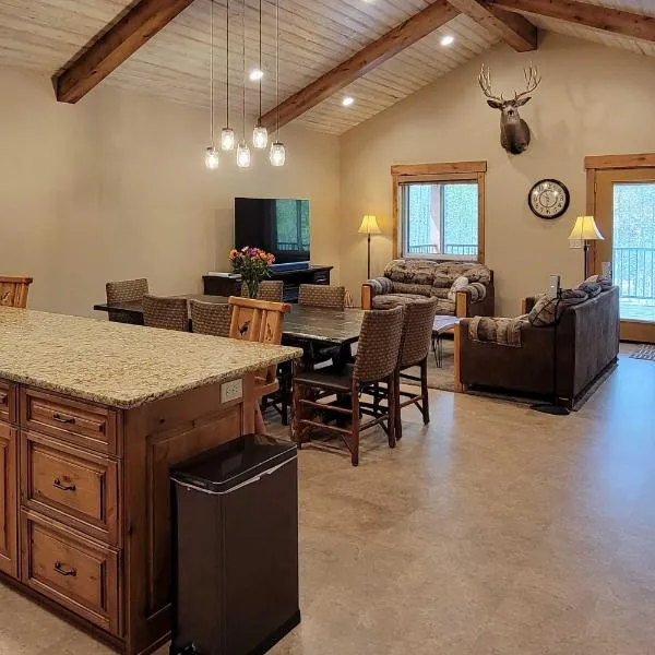 Stone Skipper Lodge by KABINO Waterfront Hot Tub Private Bath In Every Bedroom FirePit Mtn Views WiFi Grill is set in Island Park.