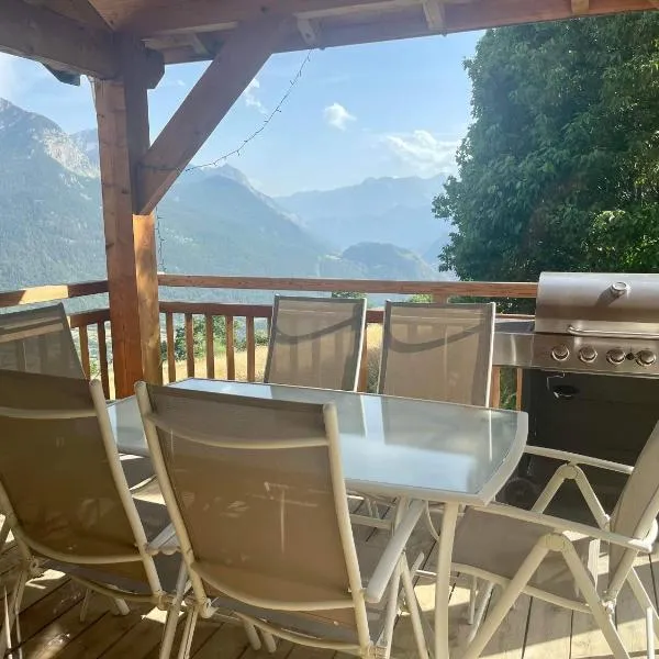 Offering barbecue facilities and garden view, Chalet chaleureux à Saint-Chaffrey avec vue montagne et cheminée is situated in Saint-Chaffrey, 42 km from Sestriere Colle and 6.1 km from Serre Chevalier...