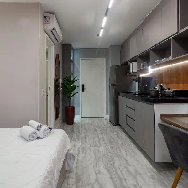 Hotel in Pinheiros, Sao PauloBreakfast optionsScored out of 10, guest rating 7.4Good - What previous guests thought, 101 reviewsSet in Sao Paulo, 4.8 km from Pacaembu Stadium, Q-Flat Hotel - Faria Lima offers accommodation with an outdoor swimming pool, free private parking, a fitness centre and a garden.