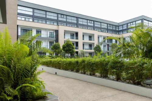 Comfortable Living: Empire 2 Bedroom Apartment @Embassy Gardens in Accra offers two bedrooms, two bathrooms, and a spacious living room. The apartment includes air-conditioning, a washing machine, a fully equipped kitchen with a microwave, oven, and stovetop, a private pool, and a work desk. Modern Facilities: Guests enjoy free WiFi, a lift, and free on-site parking. The property is pet-friendly, ensuring a comfortable stay for all travellers. Prime Location: Located 1000 metres from Kotoka International Airport, the apartment is less than 1 km from Dubois Centre for Panafrican Culture. Nearby attractions include Independence Arch (6 km), Kwame Nkrumah Memorial Park (7 km), and La Palm Casino (5 km).