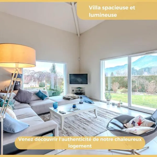 Set in Saint-Genis-Pouilly, La Grange Emnitan - Maison de ville moderne pour 12p Fêtes interdites offers a terrace with pool and garden views, as well as a year-round outdoor pool, hot tub and fitness...