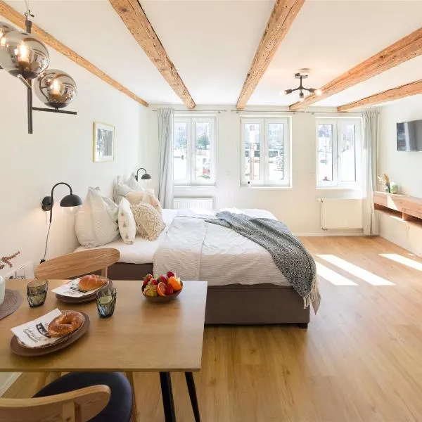 Boasting garden views, Apartments "Lichtenstein Valley" provides accommodation with a shared lounge and a patio, around 38 km from Fair Stuttgart.