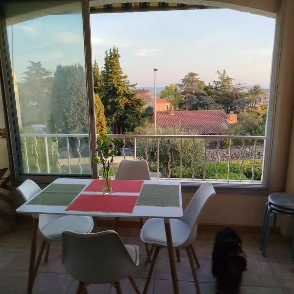Set in Sanary-sur-Mer, 1.2 km from Fregate Beach and 11 km from Toulon Train Station, Superbe studio 34m2 avec terrasse aperçu mer offers air conditioning.